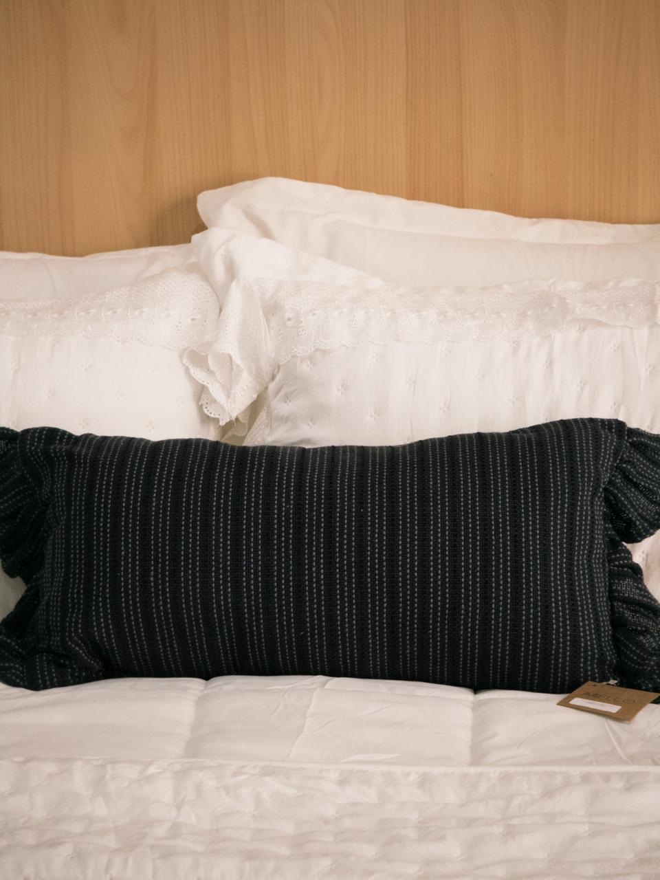 Capa baguete Vírginia produzida em teares autênticos, cada capa carrega uma trama rica em detalhes, conferindo uma textura exclusiva e um toque de aconchego que só o 100% algodão pode proporcionar.